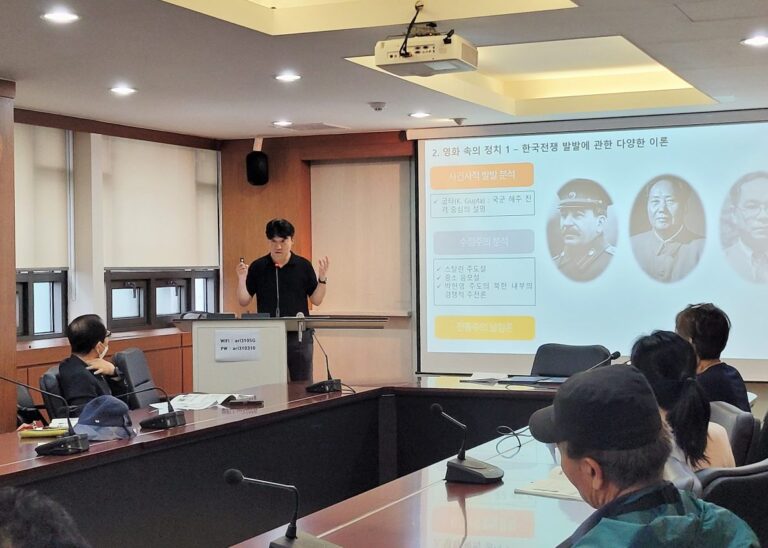 On June 14, 2023, the Seongbuk Adult Education School, PDI, and the Department of Political Science and International Relations at Korea University held the eighth lecture of the Citizen College Season 7 “Politics in Everyday Life” in Asiatic Research Institute, Korea University. In this lecture Dr. Yee, Gyu Jeong, Senior Researcher at PDI, talked about “The Korean War and Politics in the Movie ‘TaeGukGi: Brotherhood of War’”. The lecture, titled “The Korean War and Politics in the Movie ‘TaeGukGi: Brotherhood of War’”,deals with various theories about the outbreak of the Korean War, the development of the Korean War, the National Guard and the Press Federation, and the current inter-Korean relations and the situation in Northeast Asia. In addition to the traditional South Korean invasion theory, there are K. Gupta’s analysis of the historical outbreak, Stalin-led theory, revisionist analysis such as Sino-Soviet conspiracy theory, and analysis centered on U.S. foreign policy. In this⋯