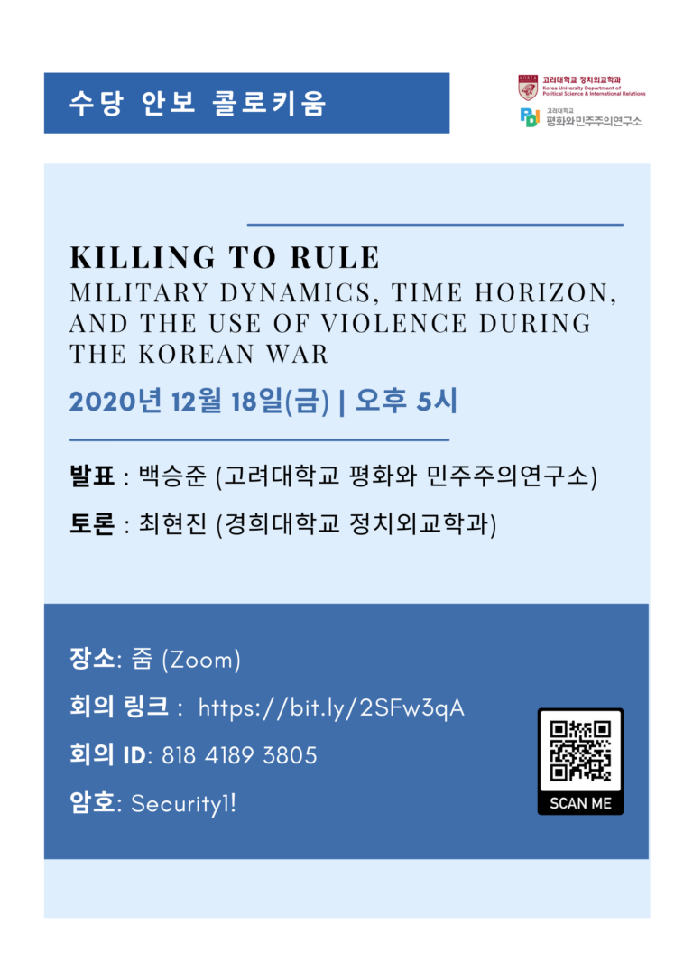[Soodang Security Studies Colloquium #3] Killing to Rule: Military Dynamics, Time Horizon, and the Use of Violence During the Korean War